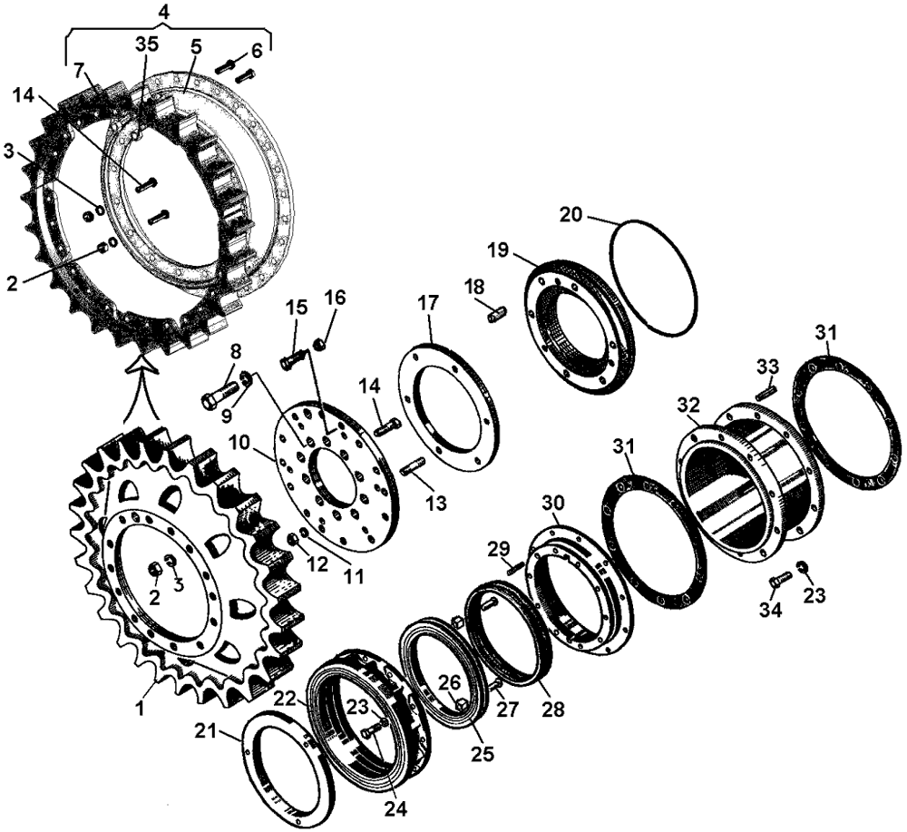 Детали бортового редуктора на Т10М (ведущее колесо, лабиринтное уплотнение, проставка)