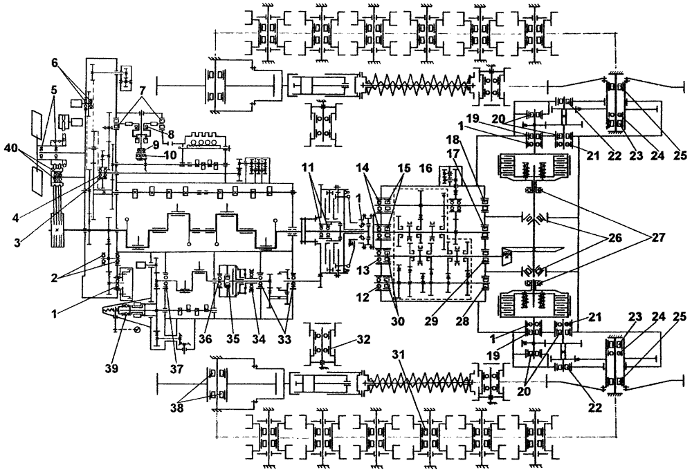 Схема расположения подшипников на тракторе с механической трансмиссией