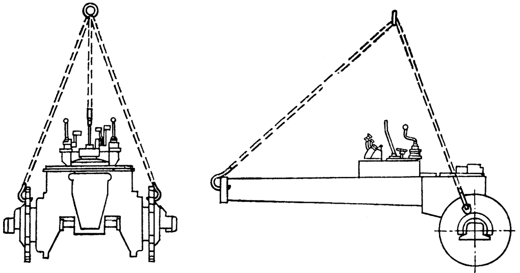 Рис. 270. Схема строповки для подъема корпуса бортовых фрикционов