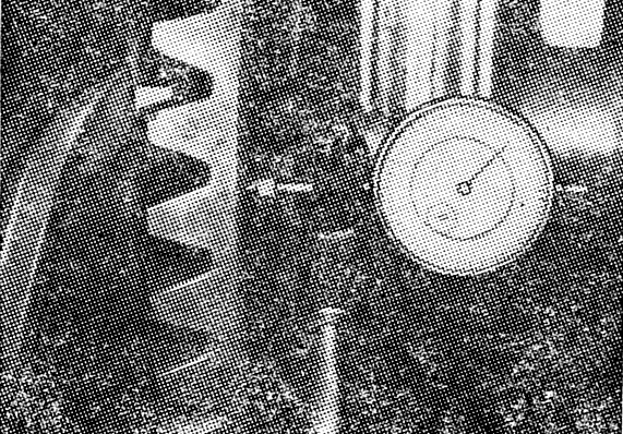 Рис. 228. Замер осевого люфта вала в конических подшипниках