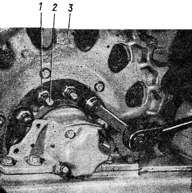 Запрессуйте в лабиринт 1 (рис. 244) три штифта 3, выдержав размер А — (14±0,2) мм. Смажьте вворачиваемую резьбовую часть шпилек 2 железным густотертым суриком и вверните шесть шпилек в лабиринт. Момент затяжки шпилек 40...70 Н-м. (4...7 кгс-м.).