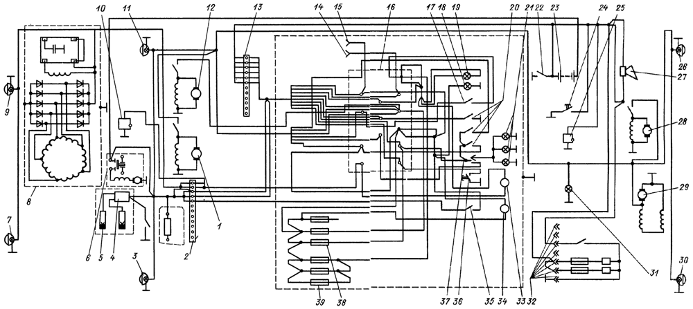 19 — болт-зажим для подсоединения провода от аккумуляторной батареи,